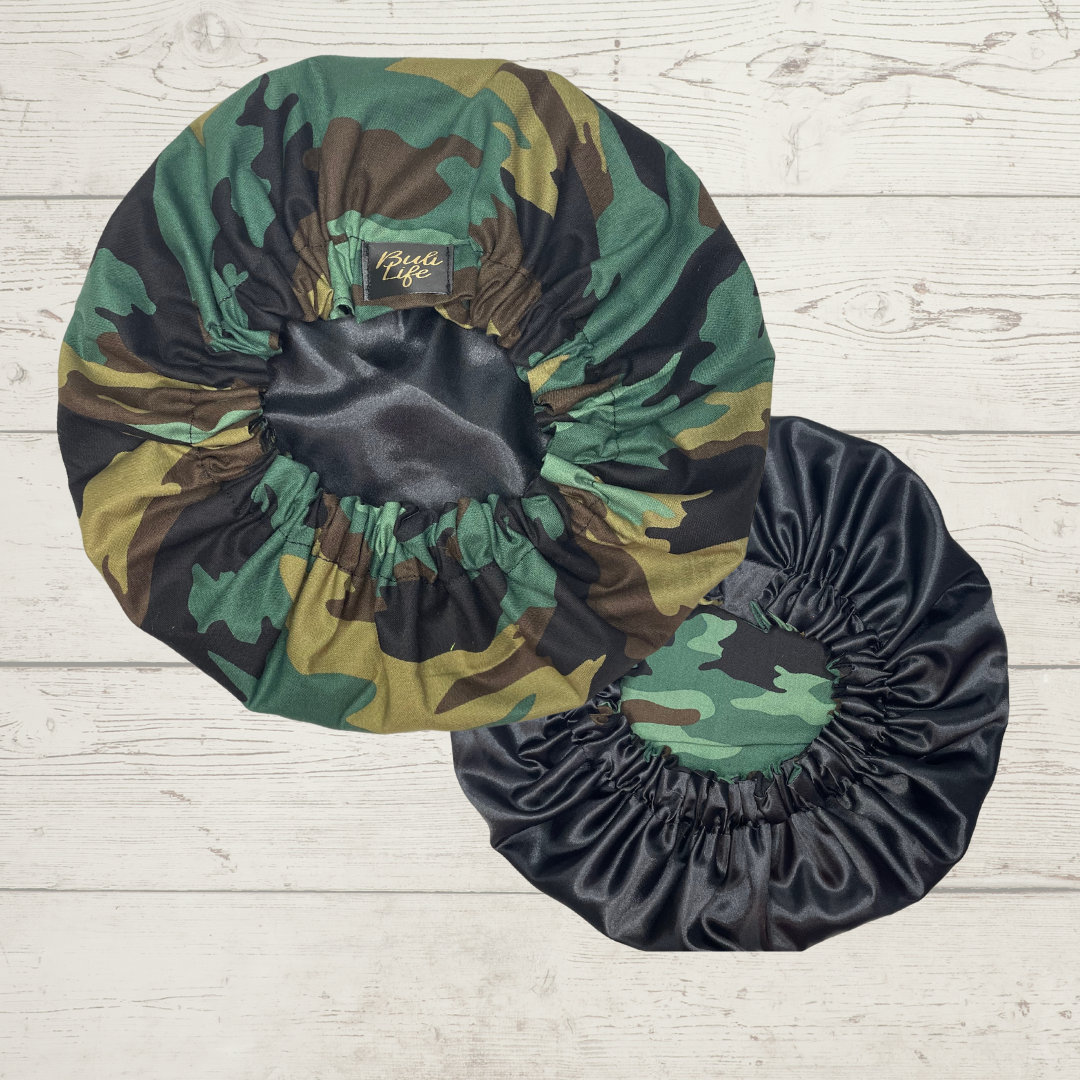 Handmade Satin lined bonnet with a beautiful cotton fabric lined in satin. The interior satin material keeps hair from drying, frizzing, and breaking while also holding in moisture while you sleep 💕!