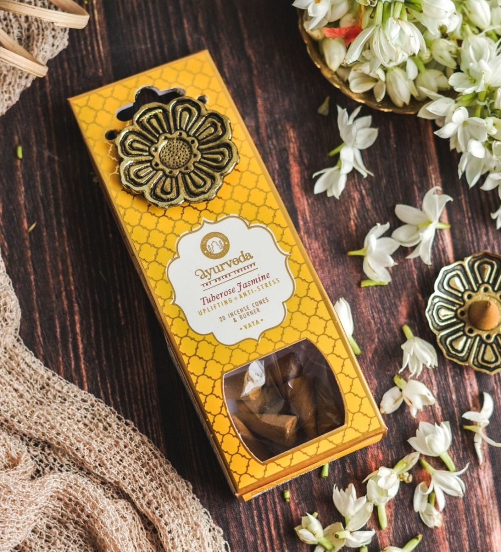 Song of India - Ayurveda Incense Cones & Burner - Tuberose Jasmine