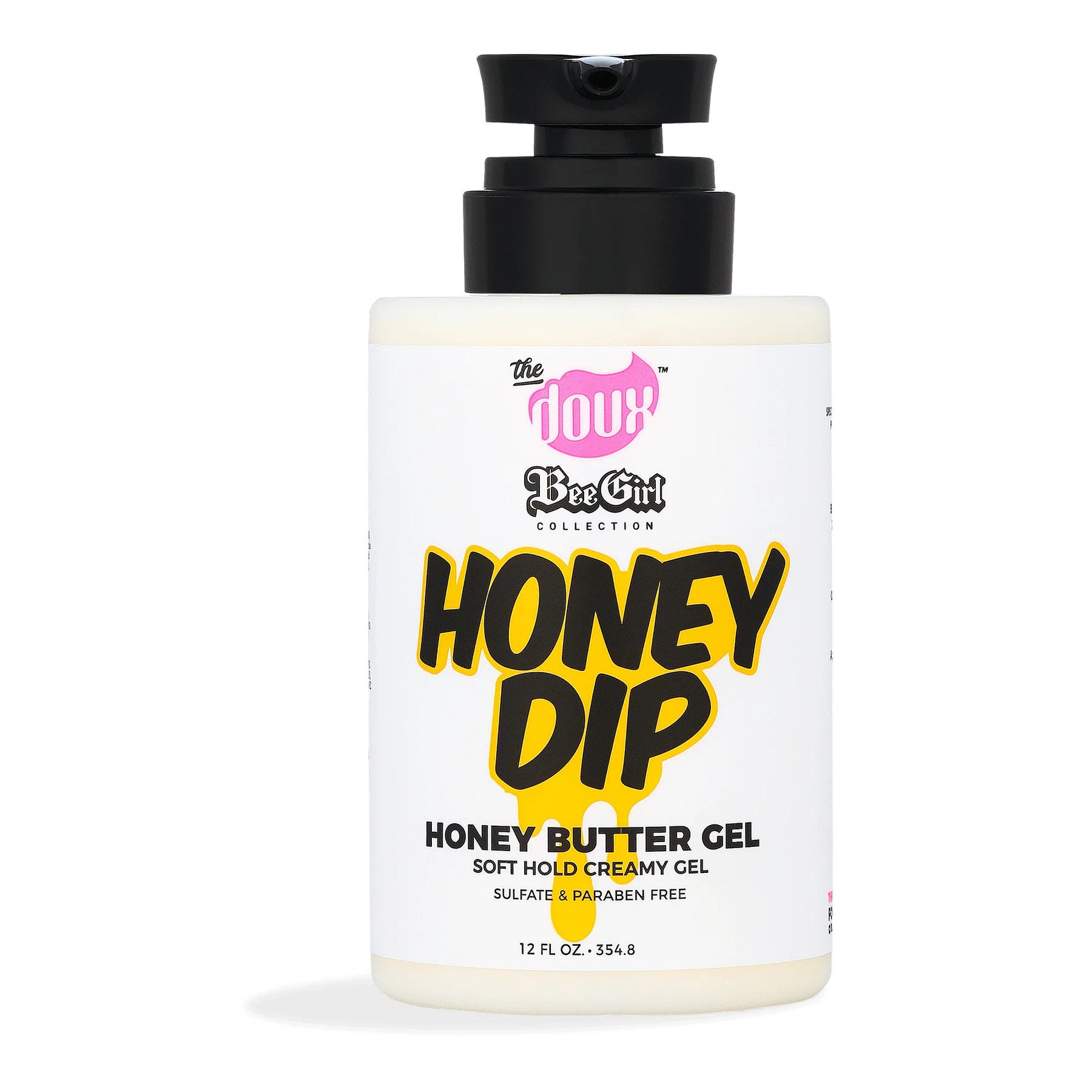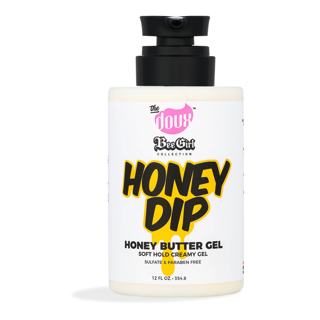 Honey Dip Honey Butter Gel. Butter-rich, gel-controlled cream. Medium hold, high shine. Defines curls without grease. Perfect for thirsty strands. Specifically formulated for thirsty hair on the mound. Powered by the science of super-charged honey to reclaim your hair's natural softness, bounce, and shine.